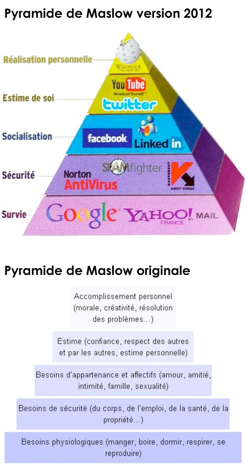 Les présents graphiques des 5 dernières années pourraient se passer de mots. On peut facilement observer comment les réseaux sociaux et les différentes outils numériques redéfinissent la pyramide des besoins de Maslow.